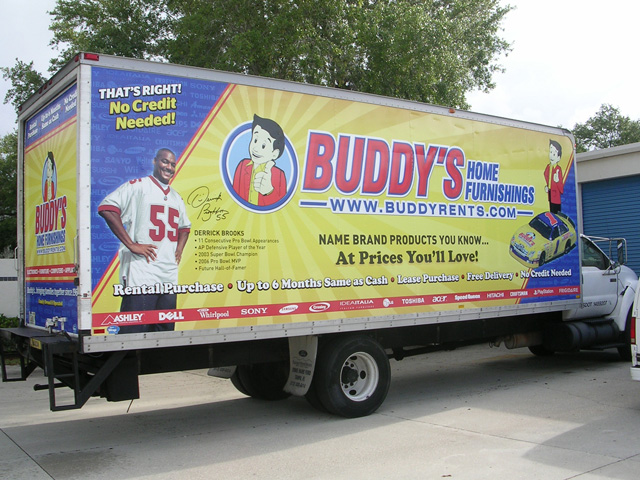 Jamie Slatton, Owner of Buddy's Home Furnishings explained that the Now That's a Wrap.com crew has wrapped everything that they've thrown at 'em without even a fllinch! Everything including portable stages, marketing vehicles, corporate race cars, boats and our entire fleet of over 300 trucks.