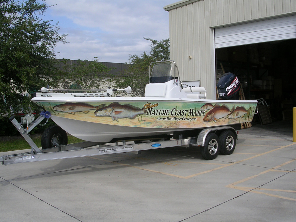 Since Now That’s A Wrap.com/Road Signs Inc. is based in Sarasota, Florida, we are surrounded by boats. We have been providing everything from boat numbers and names to full wraps. Most fishing tournaments now require boats to be identified with sponsor and tournament logos. We are the specialist in marine wraps and have everything you need to get your boat ready to compete.